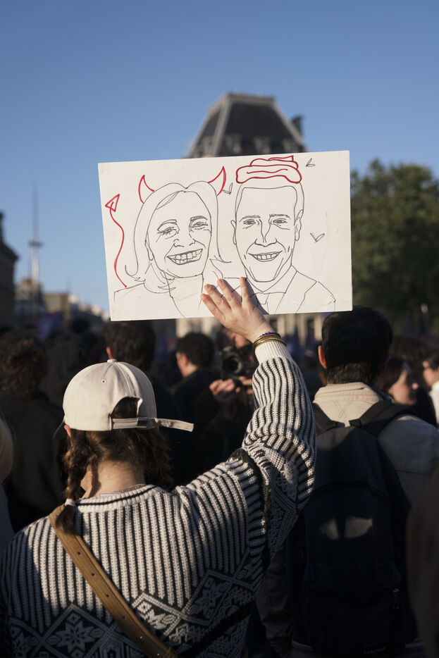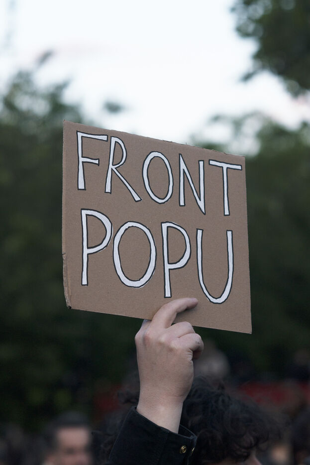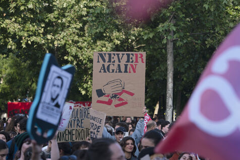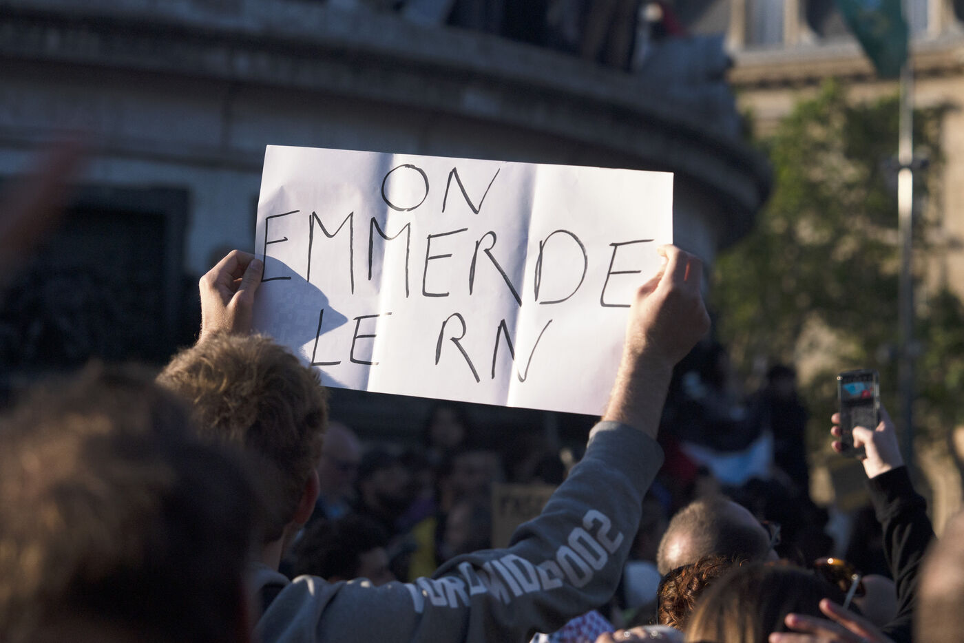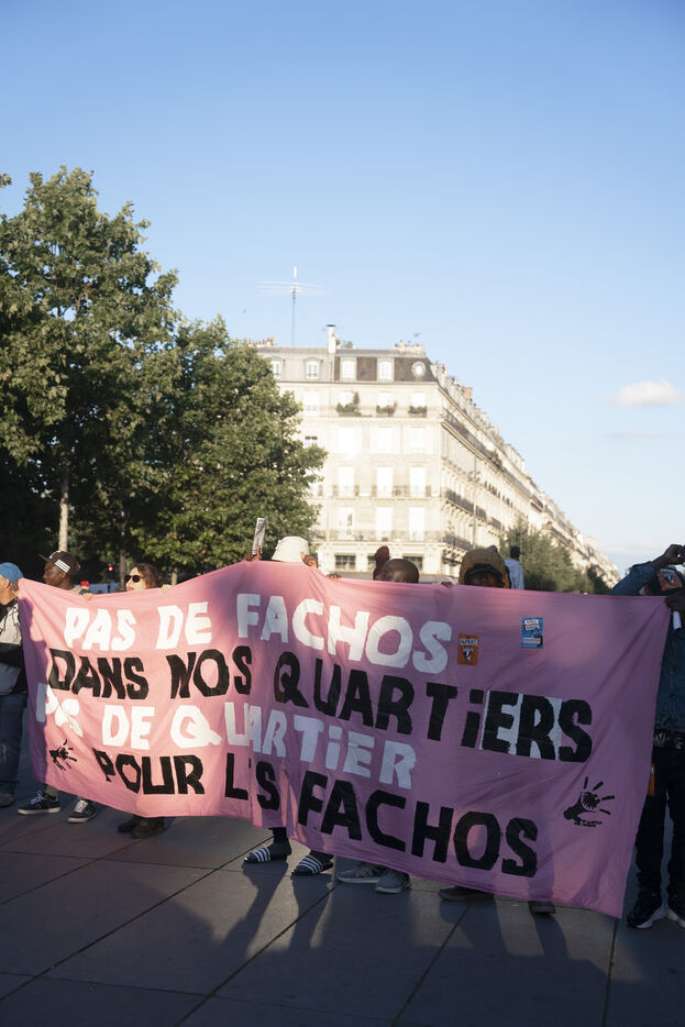 Rassemblement puis troisième soirée de manifestation spontanée contre l'extrême droite, après que le Rassemblement National et Jordan Bardella aient obtenu un score record de 31,5 pourcents aux élections européennes 2024, à Paris. La manifestation est partie de Place de la République puis s'est divisée en plusieurs groupes dans les rues de Paris. Le 11 juin 2024.