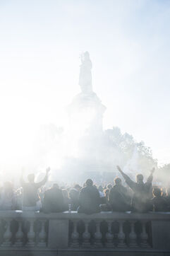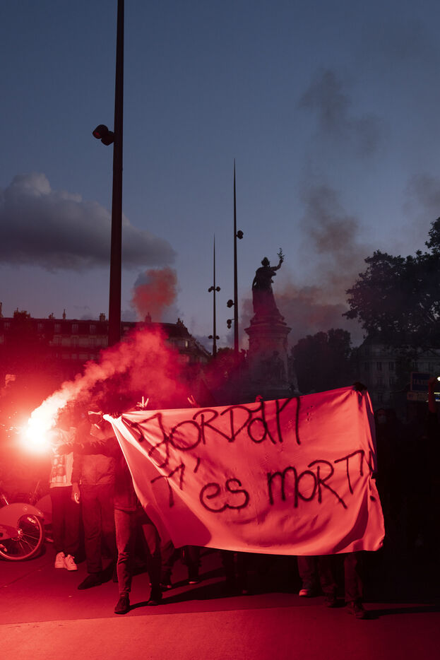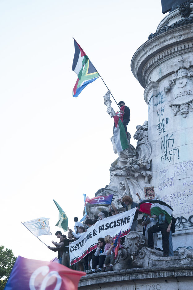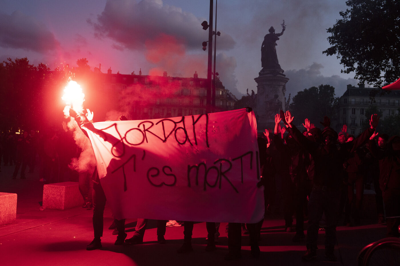 Gatering then third evening of spontaneous demonstration against the far right, after the Rassemblement National and Jordan Bardella scored a record 31.5 percent in the 2024 European elections, in Paris. The demonstration started from Place de la République and then split into several groups in the streets of Paris. June 11, 2024.