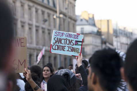 Third evening of rallies and occupations in support of the Freedom Flotilla, Place de la République, Paris. The boat carrying 12 pro-Palestinian activists denouncing Israel's humanitarian blockade of the Gaza Strip was spotted and intercepted in waters close to Gaza the day before, and the activists have been unable to communicate with the outside world since. Among the 12 activists on board were several French nationals, including MEP Rima Hassan, as well as the young Swedish woman Greta Thunberg. They are activists, humanitarians, journalists and doctors, French, German, Brazilian, Turkish, Swedish, Spanish and Dutch, who left Italy on June 1 to break the Israeli blockade of Gaza. June 11, 2025.