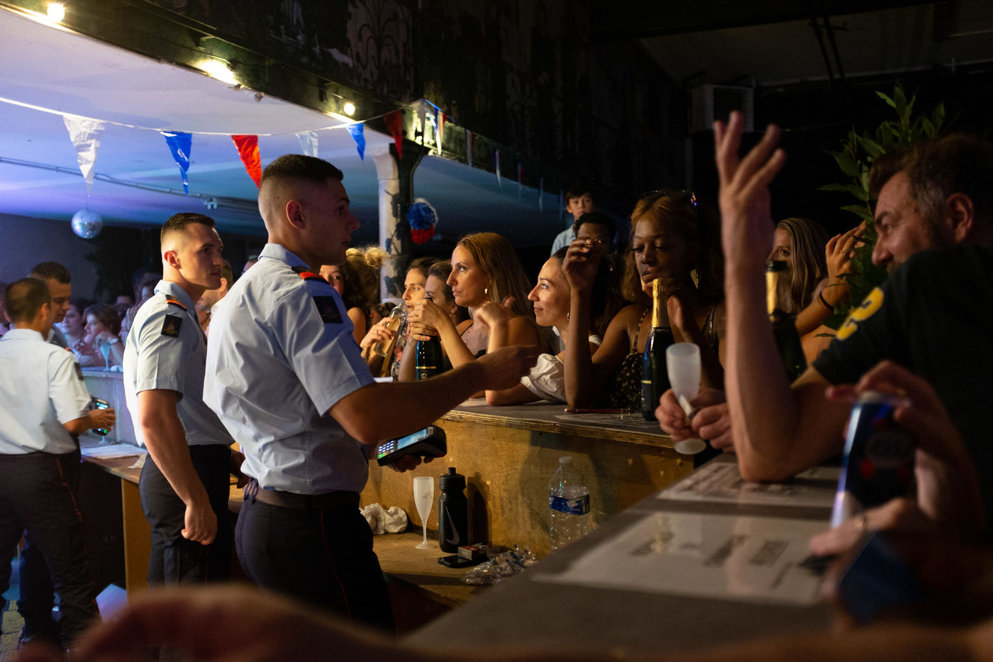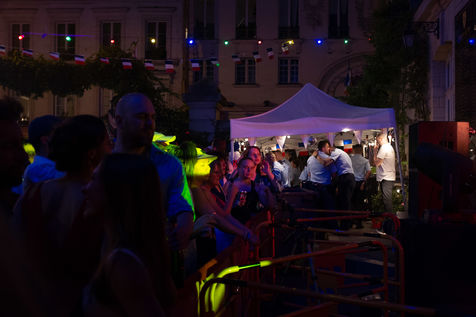 L'ambiance était très festive dans la caserne des pompiers du neuvieme arrondissement de Paris. C'est en grand nombre que les parisiens se sont retrouves Rue Blanche pour la premiere Fete Nationale sans restriction sanitaire depuis la pandemie du Covid 19.