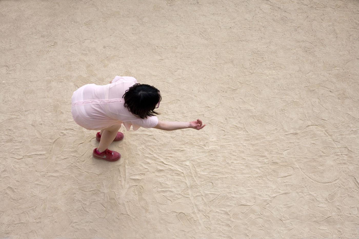 Dans ces photographies de boulistes mis à nu, les joueurs sont dépossédés de l'objet au centre de leur action. Ne subsiste que le mouvement arrêté, le geste, l'attitude. Les êtres photographiés ainsi à la sauvette en plongée se retrouvent épinglés sur un fond uniforme, soumis à notre regard surplombant, un peu comme des spécimens d'insectes ou de papillons épinglés sur une planche dans la vitrine d'un musée.
