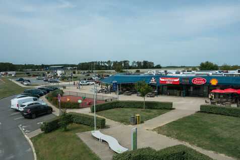Véritable temple de la consommation à l'effigie de la circulation, aires de jeux, restaurants, carburant, d'une aire à l'autre, on y retrouve le même goût de café, la même odeur dans les sanitaires, où les sandwichs triangles sont hors de prix et les boutiques de souvenirs se visitent tels des musées.