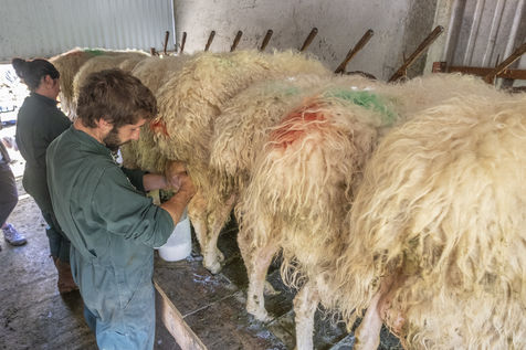 It is in his cayolar situated under the peak of Orhy that Jérôme spends most of his summers with his family. The flock belongs to him with 2 other breeders, and the 3 take turns between spring and autumn to graze the ewes, milk them and make the cheese. In the Basque country and in part of Béarn, the cheese is made and matured directly in the cayolars set up in the mountains.
