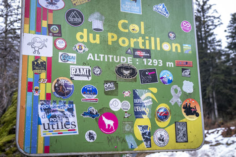 Dans les Pyrénées, au-dessus de Luchon, manifestation contre l'occupation du col du Portillon la semaine dernière par le groupuscule d'extrême droite Génération identitaire. Ces derniers prétendant lutter contre l'invasion de migrants. La manifestation organisée par divers partis politiques et d'associations de défense des droits de l'homme a réunie une centaine de personnes venus protester contre le coup de force de l'extrême droite. Celui-ci avait provoqué une vague de protestations chez les représentants politiques et amené le ministre de l'intérieur a envisager la dissolution du groupuscule. Des autocollants encore en place témoignent de l'action du mouvement extrémiste.
