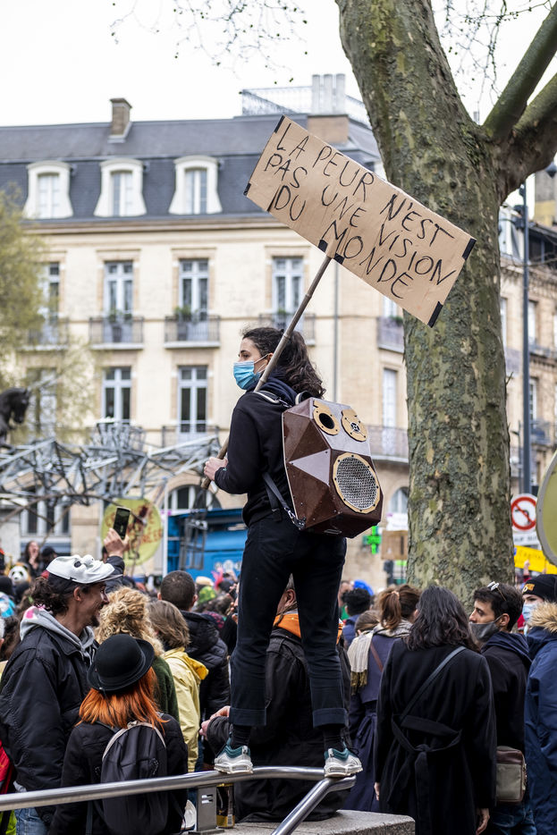 Le collectif d'artistes toulousain Mix'Art Myrys organisait une manifestation. Les participants étaient invités à venir masqués, déguisés et équipés pour faire du bruit, pour que « la réduction au silence leur casse les oreilles »