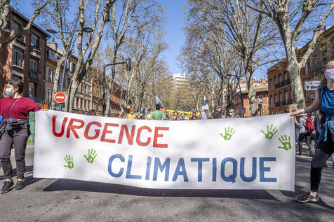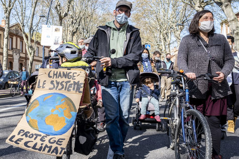 A la veille du débat sur la loi pour « la lutte contre le dérèglement climatique » à l'Assemblée nationale, plus de 30 organisations et associations ont invité à rejoindre le mouvement national pour une vraie loi climat. Le projet de loi, issu de la convention citoyenne, ayant été jugé trop timide. Des rassemblements ont eu lieu dans près de 160 villes en France. Selon les organisateurs, 11 000 personnes ont défilé partout en France. Toulouse le 28 mars 2021.
