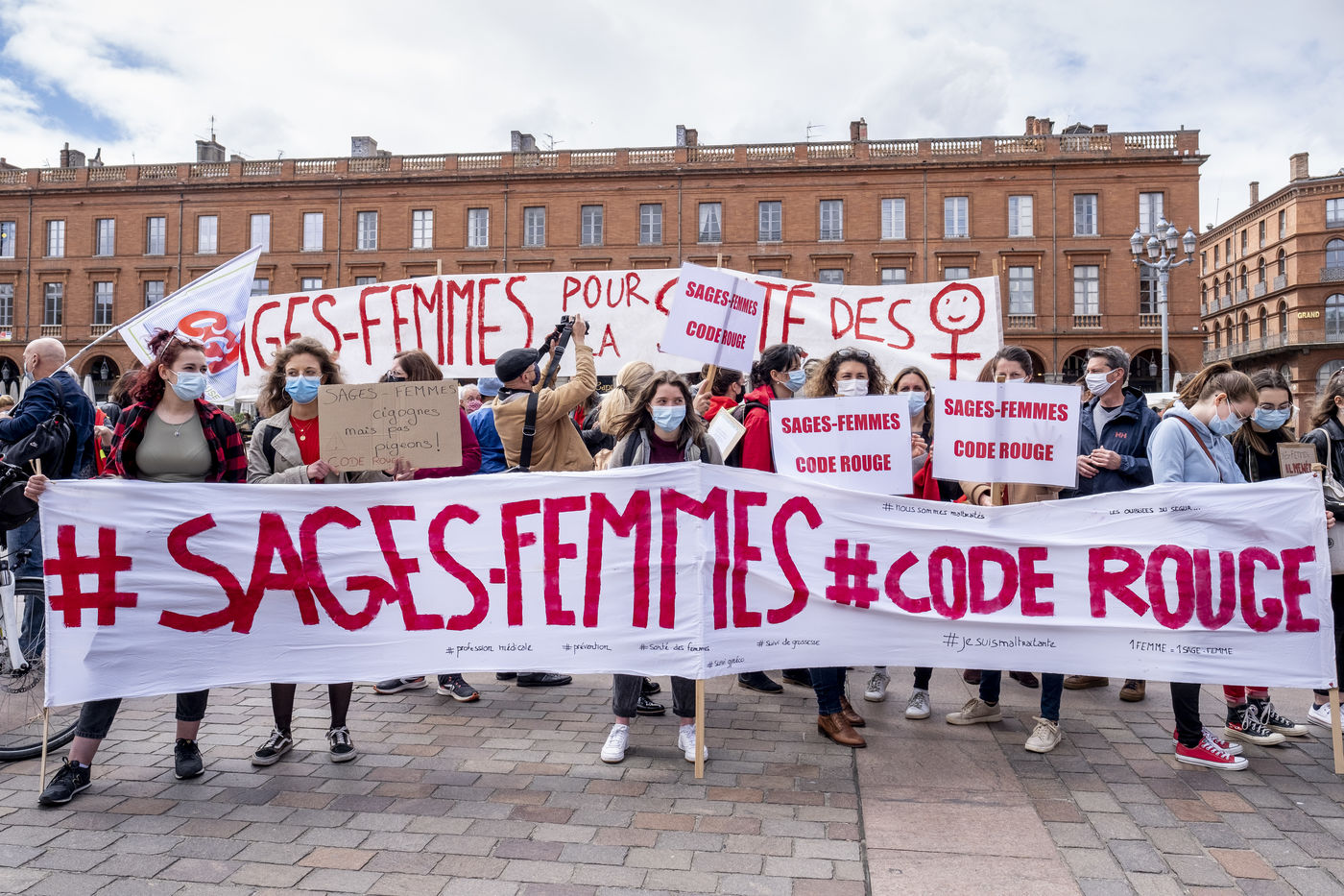 In Toulouse, the midwives who joined the national strike, demonstrated on the place of Capitole, for the recognition of their status and wage demands.