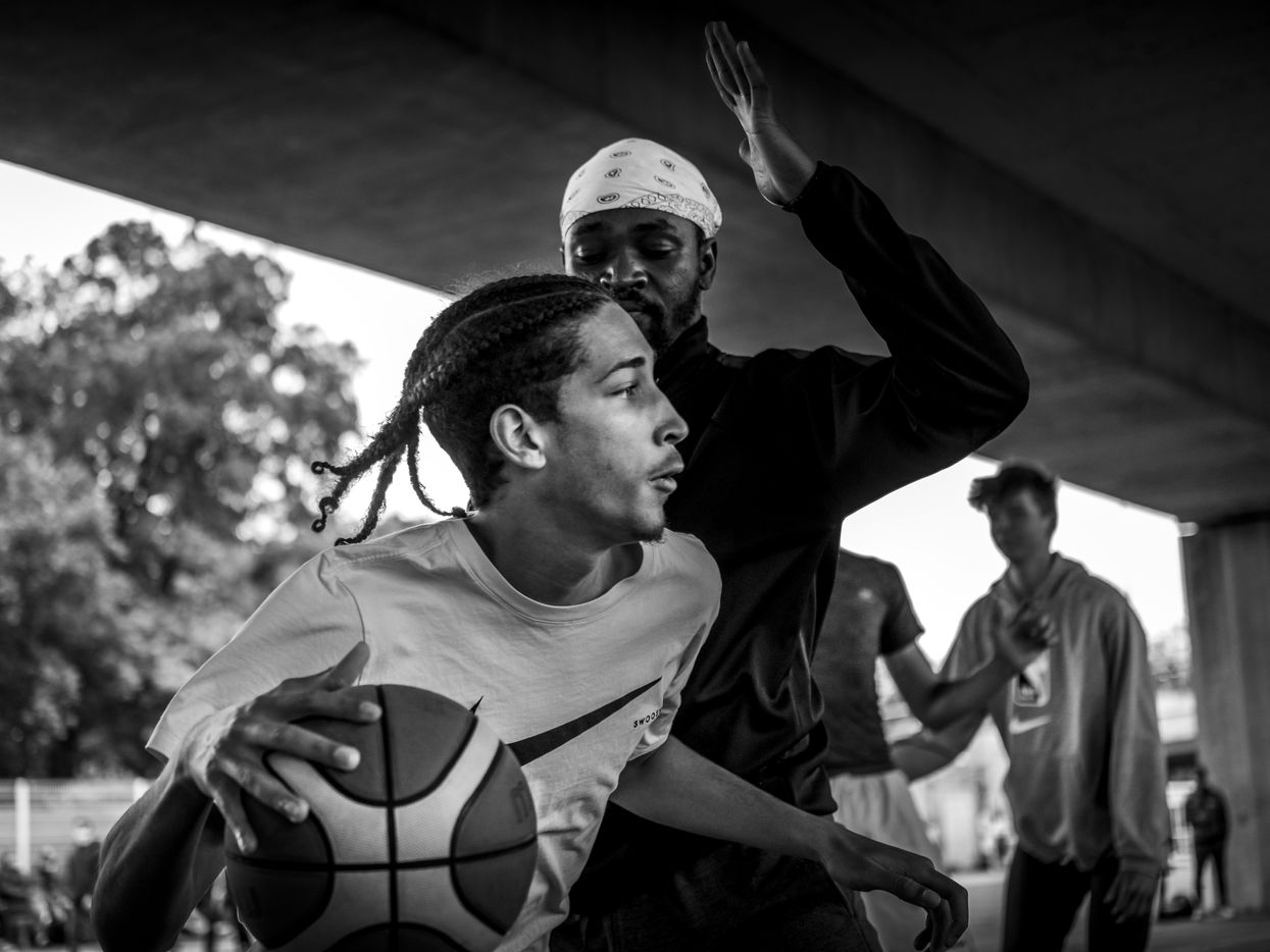 Close to the Toulouse Stadium, under a road bridge, a string of concrete basketball courts forms the most popular playgroung of the city. The best young players of the agglomeration, usually playing in clubs, meet there regularly and tournaments like this one are organised every year. For all these enthusiasts, who are currently unable to play because of the COVID, basketball is still something sacred.