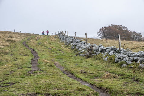 FRANCE - OCCITANIA - HIKERS ON THE AUBRAC PLATEAU IN AUTUMN.