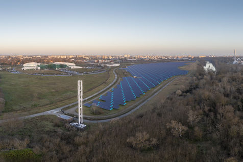 The largest urban solar power plant in France is installed on the Oncopole site in Toulouse. Installed on 25 hectares of the former AZF factory site, it has been in operation since 2020 and produces 20 million kWh per year, equivalent to the consumption of more than 4,000 households. It is operated by the company Urba Solar. Seen from the sky, and thus from the future Téléo urban cable car, its design is particularly neat thanks to the coloured panels placed between the photovoltaic panels.