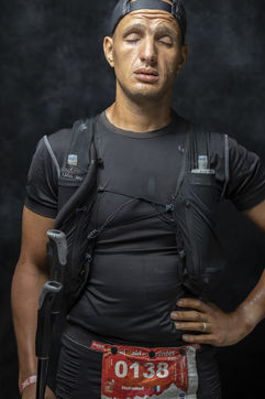 I had been wondering for a long time in what physical and mental state one could be when arriving close to the finish of a long distance mountain race. So I set up a mobile studio at the last feed station of the Grand Raid des Pyrénées ultra trail and offered a portrait to the runners. At this point in the race, the first runners had been gone for at least 20 hours, and the last ones for almost 40 hours. They have covered 150 km on rocky paths and climbed up and down close to 10,000 m of ascent. They are all extremely tired, many suffering from various pains, but they only have 2 km of climbing and 11 km of descending with 1,400 m of difference in altitude left to cross the finish line. They are therefore all pretty sure that they will finish the race, which no doubt explains the joy that shines on the faces of some of them. A strange shooting that lasted 20 hours non-stop and where I could admire the outstanding mental strength of these champions.