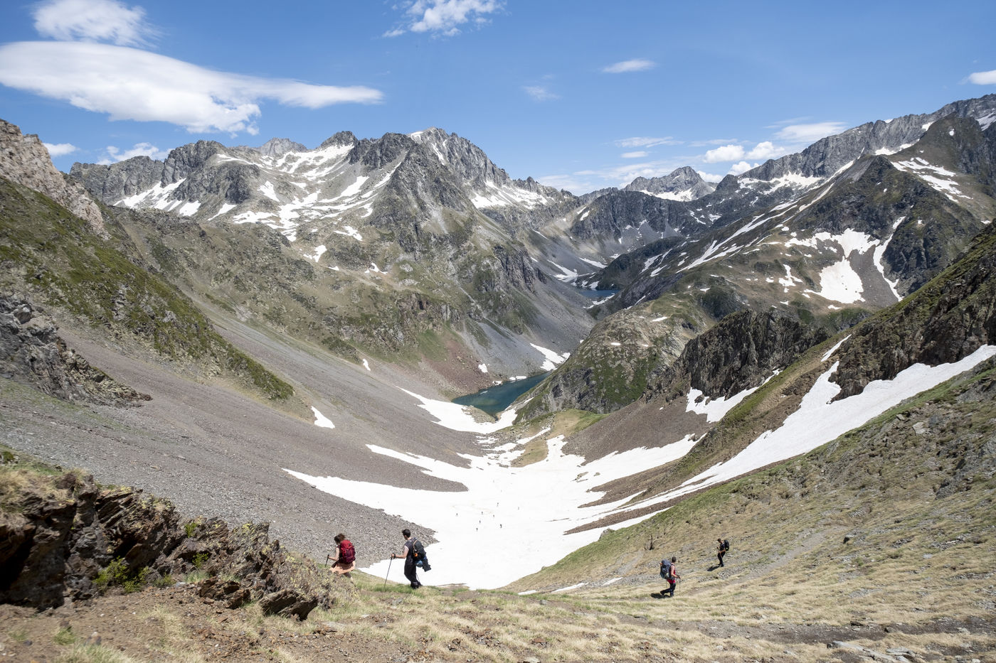 A 2-day hike in the Pyrenees National Park, with a night at the Packe refuge. This unguarded refuge in the Néouvielle massif is one of the smallest in the Pyrenees. It can only accommodate 9 hikers. After the night, visit the Tourrat lake, still frozen at this time.