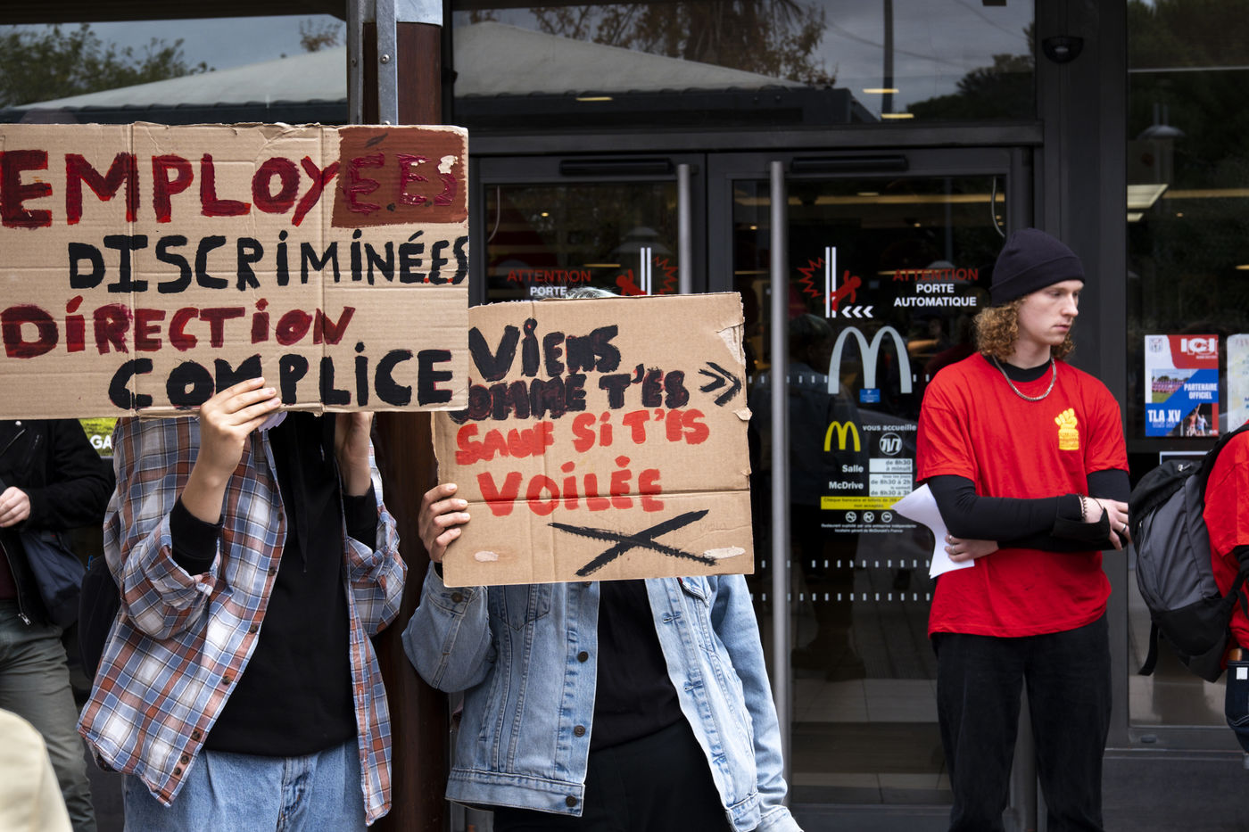 Au restaurant Mac Donald's d'Aucamville, près de Toulouse, des salariés disent subir des violences à caractère sexistes et racistes et homophobes depuis plus d'un an. Des violences physiques auraient également été subies en septembre dernier. Plusieurs alertes ont été envoyées à la direction qui a déclaré avoir pris des mesures avec une mise à pied avant licenciement de l'auteur des faits et le départ d'un des manager qui aurait été déplacé mais pas licencié. Des explications peu convaincantes pour les salariés soutenus par le collectif McDroits qui lutte contre les discriminations au sein de la chaîne et qui accuse la direction de ne pas avoir réagi à des comportements et des actes particulièrement graves malgré des alertes répétées. La CGT, Solidaires, et Révolution Permanente sont également venus apporter leur soutien aux salariés lors de la manifestation.