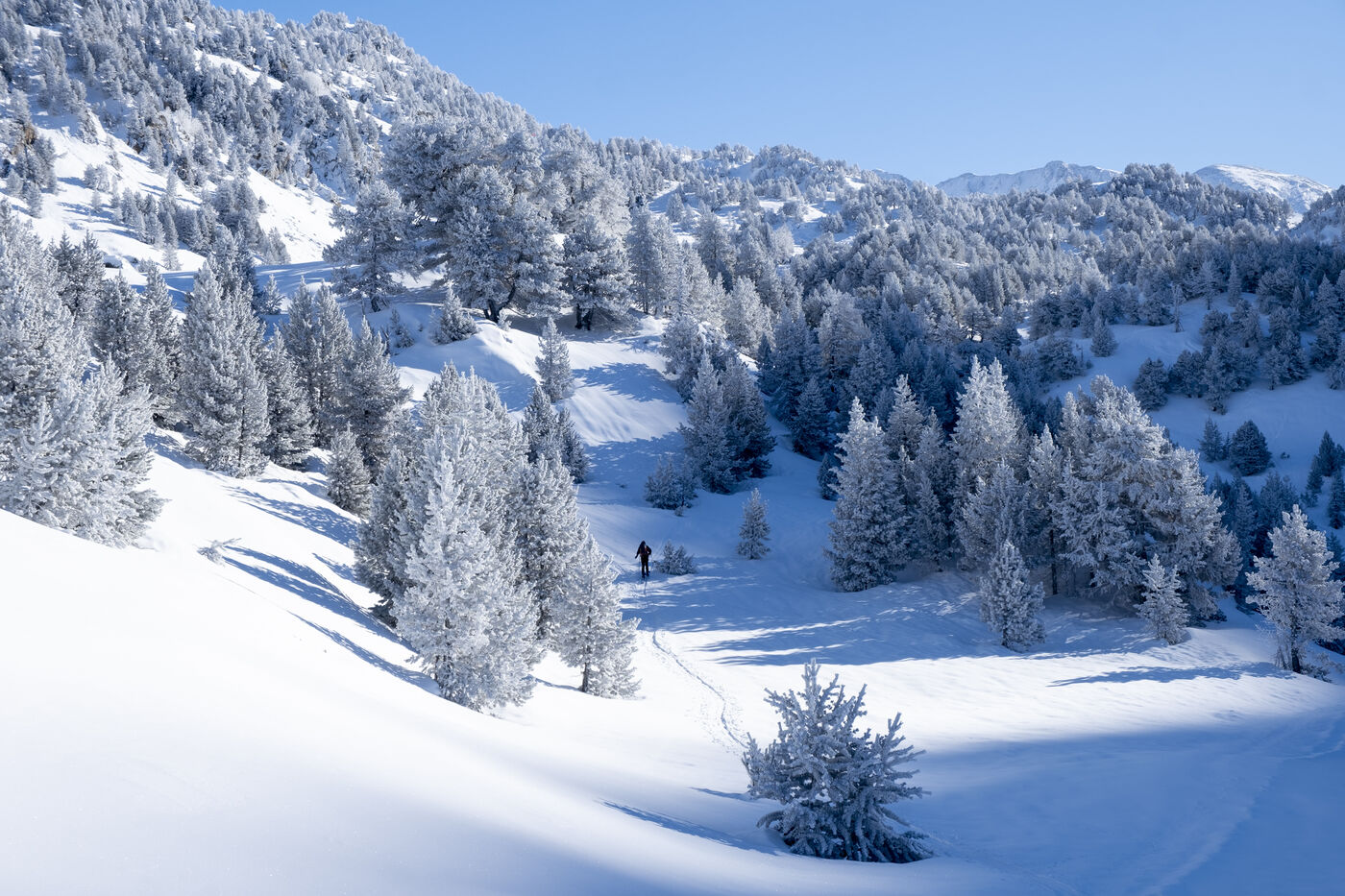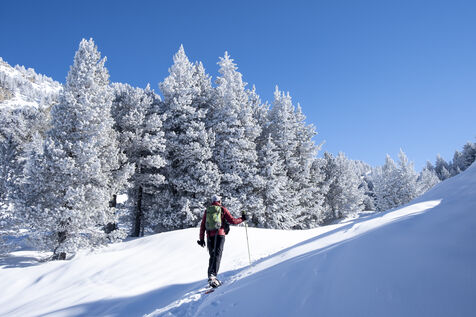 In the Val d'Aran, starting from the Spanish ski resort of Baqueira Beret, a snowshoe hike to the Baciver lakes in the Alt Pireneu natural park. This park of almost 70,000 hectares is the largest in Catalonia. It is an area of high natural value that serves as a refuge for protected species and extends from the central Pyrenees to the highest peaks in Catalonia and the Andorran border.