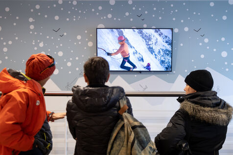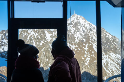 In the Pyrenees, the brand new guide office of the Pic du Midi organises ice climbing sessions. Perched at an altitude of 2,876 m, the Pic is easily accessible by cable car. At the top, the mountain guides equip the participants and introduce them to the practice on a 35-metre high waterfall located just under the glass footbridge above the void, one of the other attractions of the place. Under the feet of tourists and the crampons of climbers, the 1,000-meters-high north face gives an impression of vertigo. The climbers progress on the ice with two ice axes and the front points of their crampons.