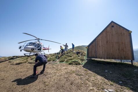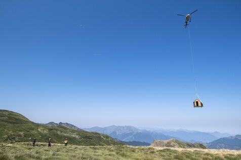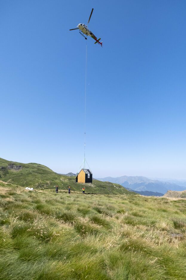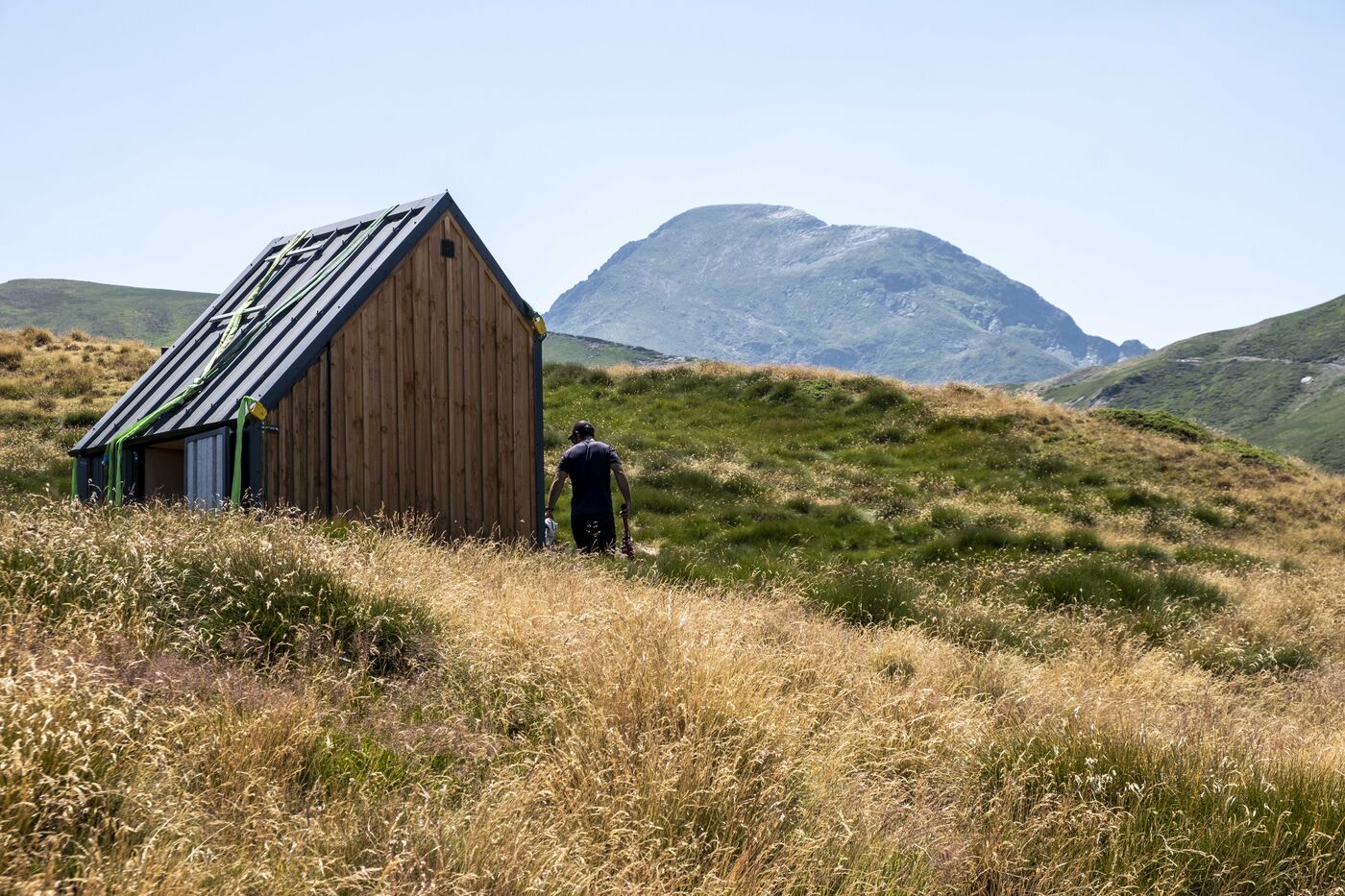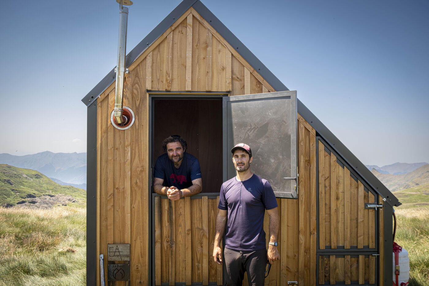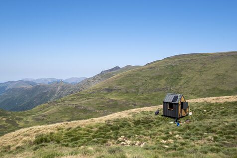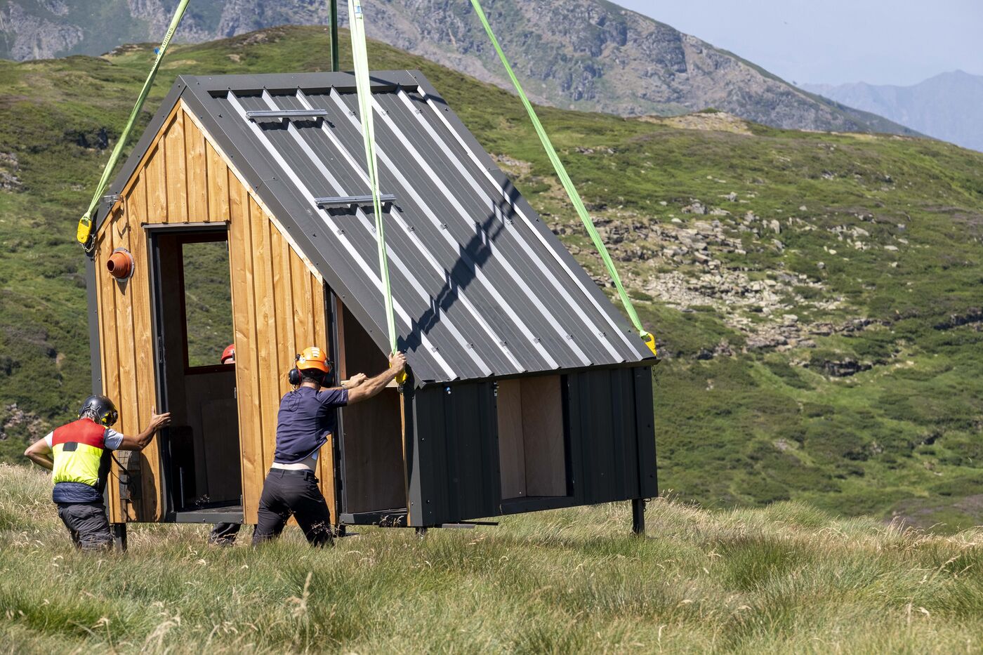 During the summer, Esprit Altitude deploys mobile shelters for shepherds in the Pyrenean mountains. These huts, transported by helicopter to isolated sites or simply by tractor, are installed to facilitate their work on the large summer pastures. They are rented or bought by the communes or the pastoral groups. These cabins allow greater flexibility in the work of the shepherds and come in addition to the traditional cabins. With a living area of 4.5 m2, the shepherd can sleep, eat or heat himself with a mini wood stove. A solar panel, a rainwater recovery system, storage space and a dog house complete the equipment.