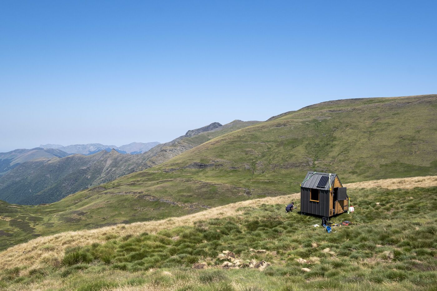 INSTALLATION OF A MOBILE SHELTER FOR SHEPHERDS ON A PYRENEAN ESTIVE.