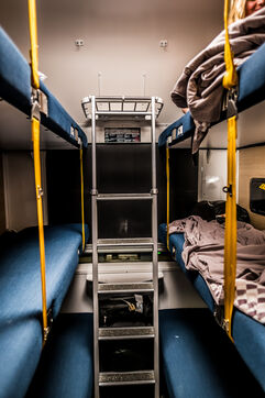 Un voyage en train entre les gares de Paris-Austerlitz et Toulouse-Matabiau. Les trains de nuit avaient totalement disparu en France en 2017, avant de réapparaitre à partir de 2021. Il existe aujourd'hui 8 destinations en France desservies par le train de nuit à partir de Paris. En 2ème classe, il y a 6 couchettes par compartiment et, en plus de la couverture et de l'oreiller, la SNCF fournit un kit pour la nuit, avec des boules-Quilès, un masque, des lingettes et du dentifrice à croquer.