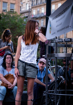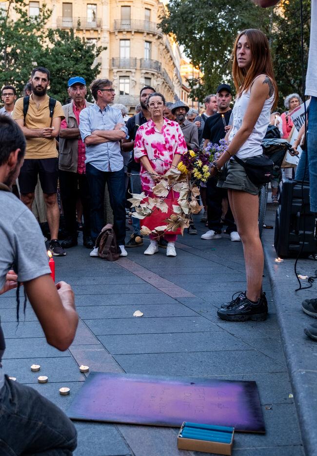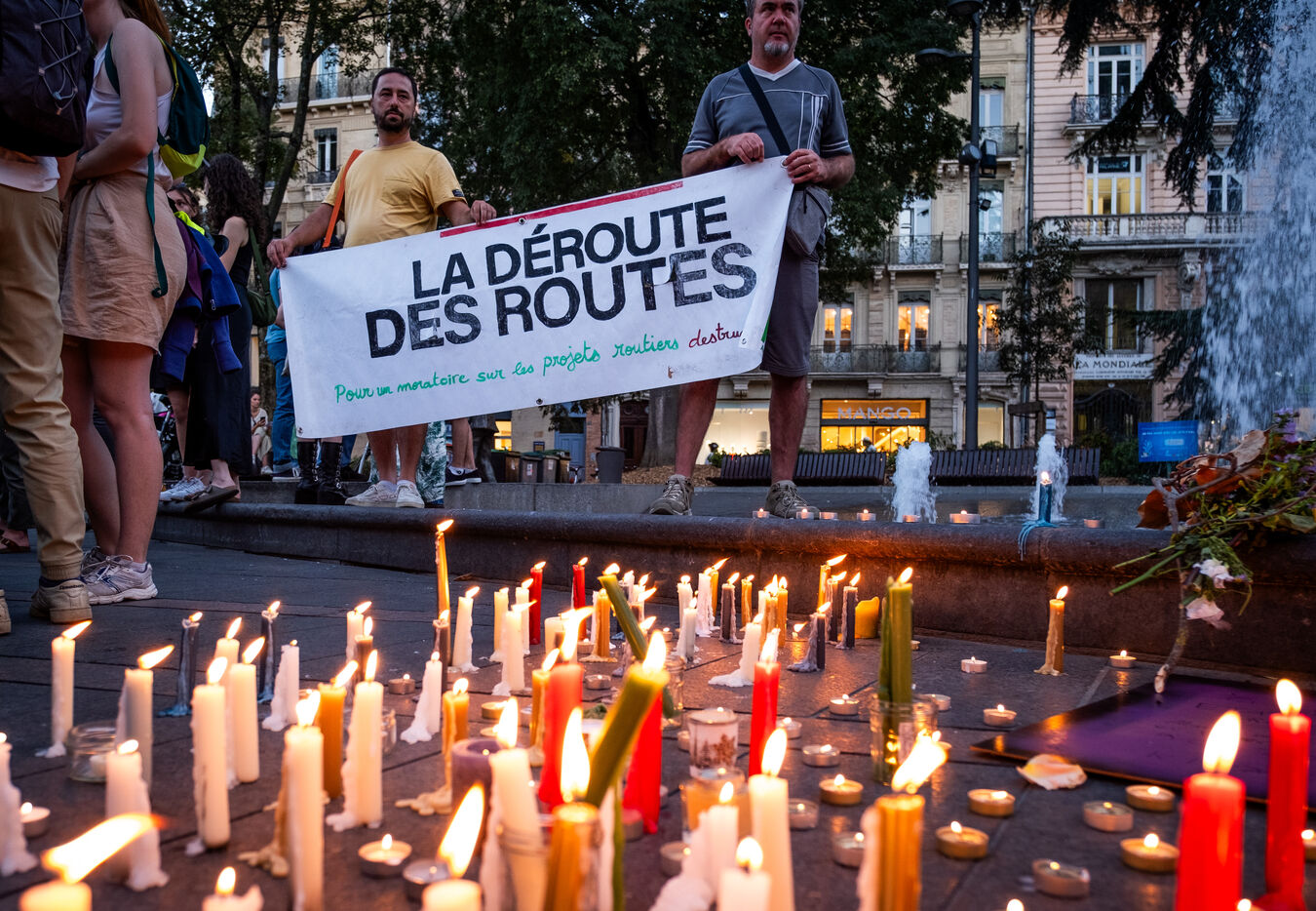 Le collectif citoyen la Voie est libre qui lutte contre le projet autoroutier entre Toulouse et Castres (autoroute A69) organisait un rassemblement après le rejet de la demande de suspension des travaux par le tribunal administratif. Les manifestants ont organisé une cérémonie d'enterrement de l'état de droit. Plusieurs grévistes de la faim étaient présents.