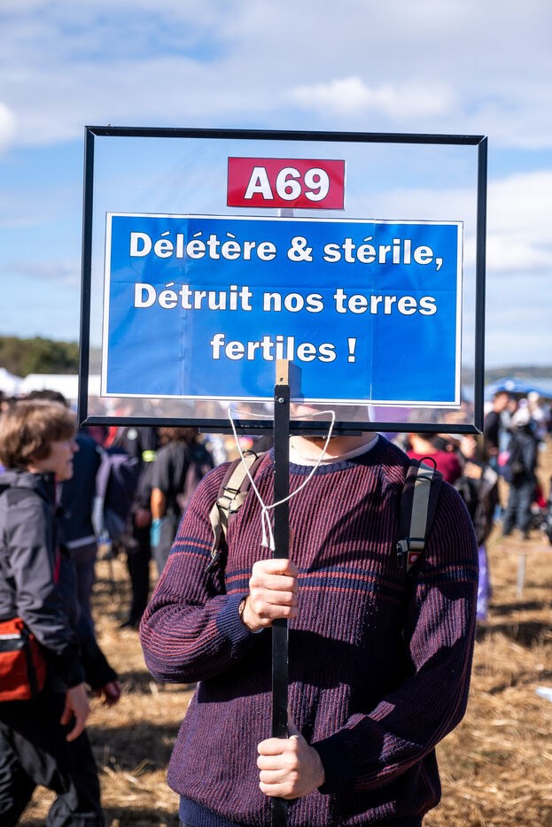 The citizens' group la Voie est libre, which is fighting against the motorway project between Toulouse and Castres (the A69 motorway), organised a large rally with several other environmental organisations. Despite 2 negative opinions from the National Council for the Protection of Nature (CNPN) and the Environmental Authority, the struggle of activists and Atosca's failure to honour its commitments, the political authorities want to go ahead with this project. This motorway project, which is several decades old, would result in the loss of 474 hectares of farmland and natural areas, and would require quarrying to extract fill. What's more, this motorway route, which would cost €17 for a return journey, would only save around ten minutes compared with the same journey on the upgraded RN126. This project, which, according to the opponents and their supporters, is in total contradiction with the climate emergency, is supported by the region and various local mayors.