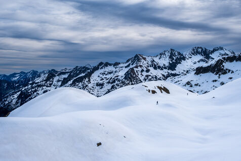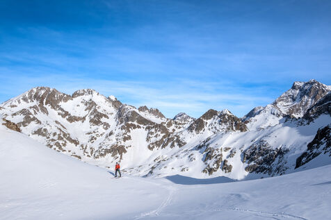 SKI TOURING IN THE PYRENEES NATIONAL PARK AROUND THE NEW MARCADAU REFUGE.