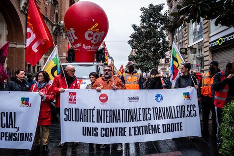 Several thousand demonstrators gathered in Toulouse for the traditional May Day defile. In addition to trade union demands for jobs, wages and against austerity, many demonstrators also expressed their support for Palestine.
