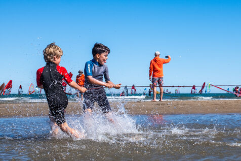 The 22nd edition of the Défi Wind de Gruissan brought together 1,500 professional and amateur participants from 40 countries. During this event, which is the biggest gathering of windsurfers in the world, life on the beach goes on and holidaymakers cohabit as best they can with the athletes and their equipment.