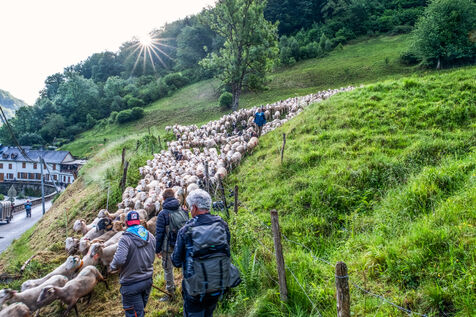 Every year, the departure of the herds for the summer pastures is a celebration. More than 300 people came to the Biros valley to accompany the animals and shepherds who will be staying all summer in the mountains on the Bellongue summer pasture. To mark this ancestral tradition, which attracts more and more people to the Pyrenean valleys every year, a large meal was served and the local folk group came to liven things up.