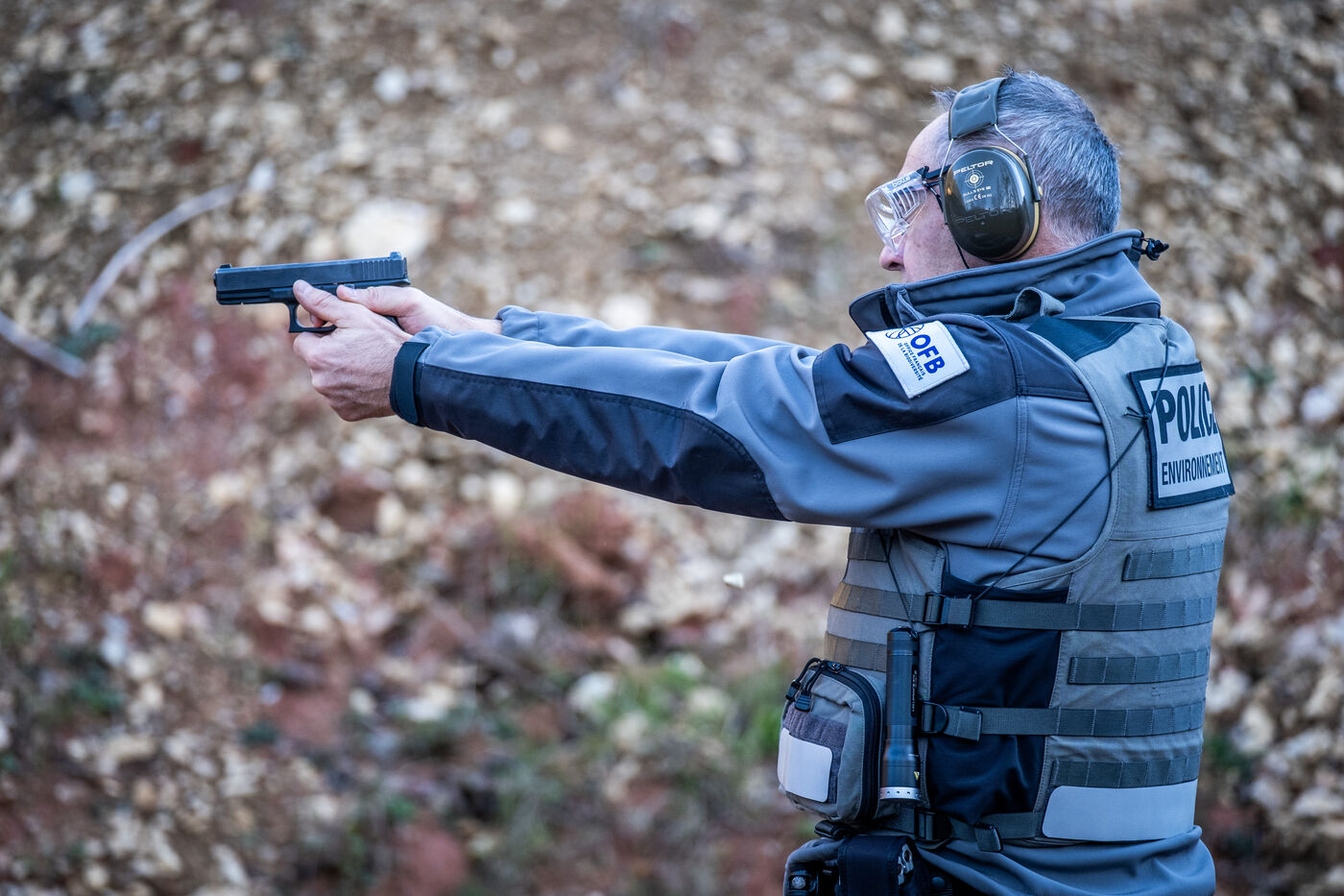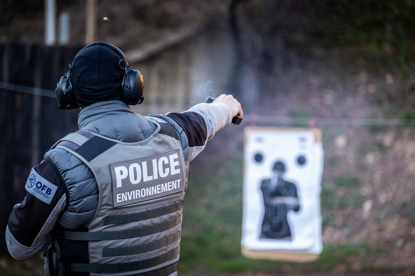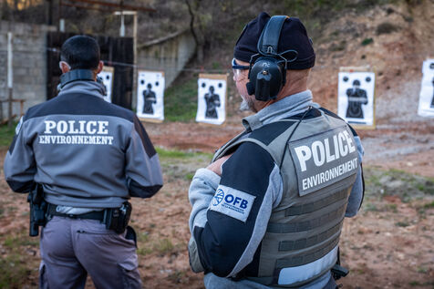 In addition to their protection and control missions, the agents of the Office Français de la Biodiversité (OFB) also have a policing mission. In order to carry out their duties in complete safety, they undergo regular training in shooting and intervention techniques.