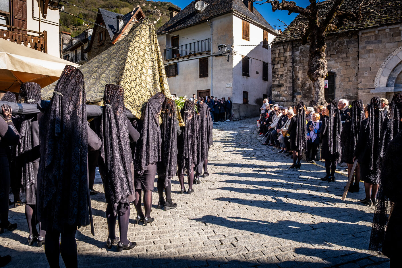 Since 1879, the small village of Bossóst, close to the French-Spanish border, has hosted 2 processions on Good Friday. Penitents in hoods and women in mantillas carry thrones along a Way of the Cross through the village. This Catholic tradition has existed in Spain since the 16th century.