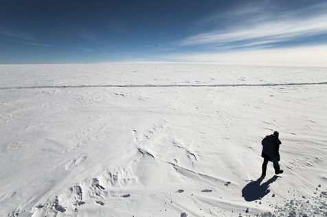 Le continent échappa longtemps encore à la connaissance humaine. Et le blanc de la carte de l'Antarctique que dévoraient du regard les explorateurs de la fin du XIXème siècle est toujours aussi immaculé. Lorsqu'on arpente ce territoire, on ne voit rien. Rien, si ce n'est l'ombre de nos pas, de nos peurs, de nos images, l'ombre de nous-même... Pour le photographe confronté à l'immensité blanche et désertique, c'est un