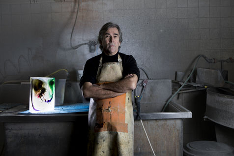 Portrait d'Antoine Leperlier, artiste verrier, Conches-en-Ouche, Eure, Normandie, FRANCE - 09/01/2019.