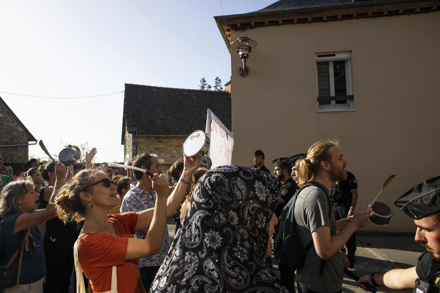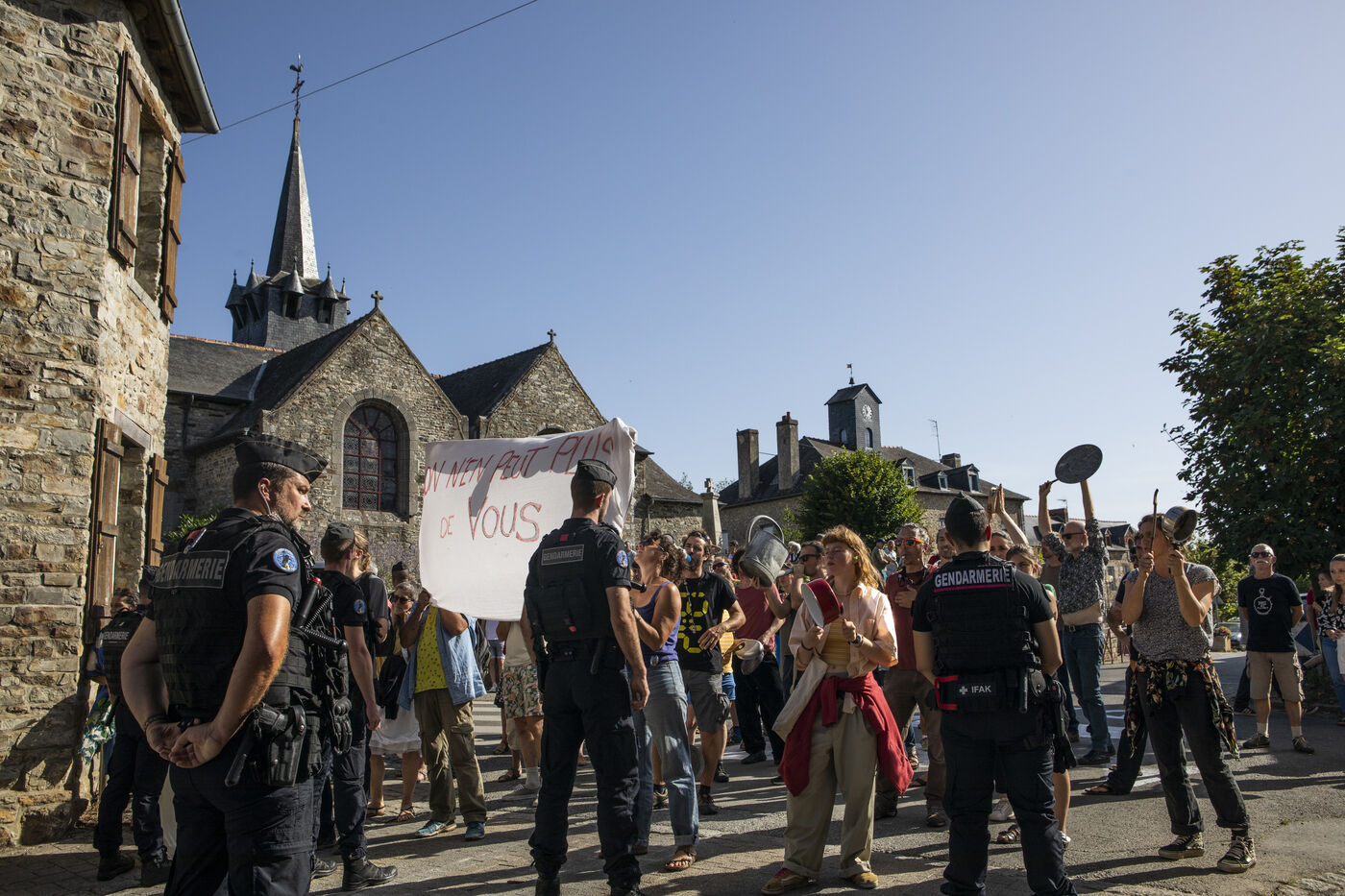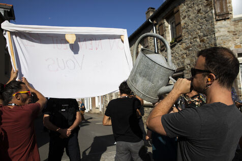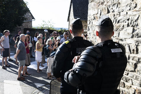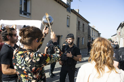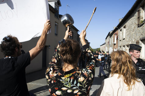 A group of several dozen Germinois, residents of Saint-Germain-sur-Ille, are banging pots and pans to protest against the visit of Prime Minister Elisabeth Borne, Gabriel Attal, Minister of Education and Fadila Khattabi, Minister Delegate for the Disabled..