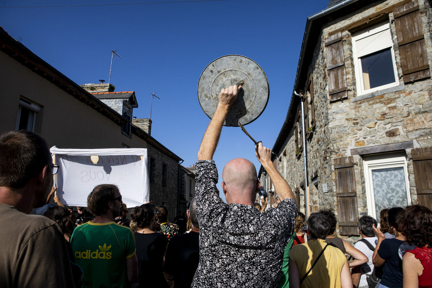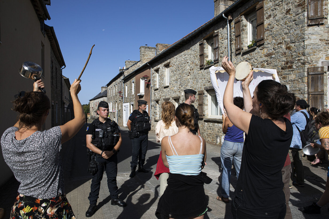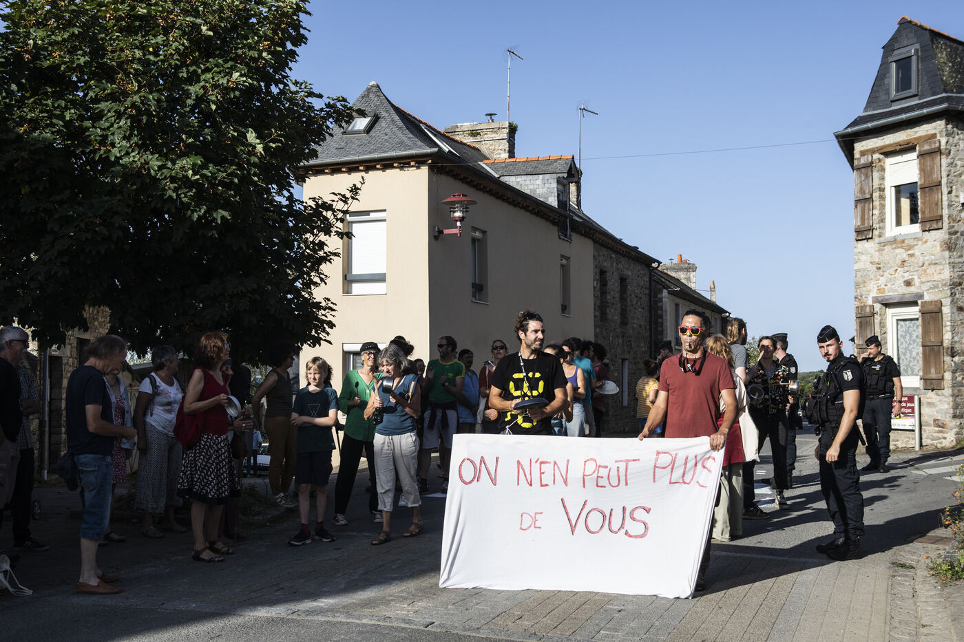 A group of several dozen Germinois, residents of Saint-Germain-sur-Ille, are banging pots and pans to protest against the visit of Prime Minister Elisabeth Borne, Gabriel Attal, Minister of Education and Fadila Khattabi, Minister Delegate for the Disabled..