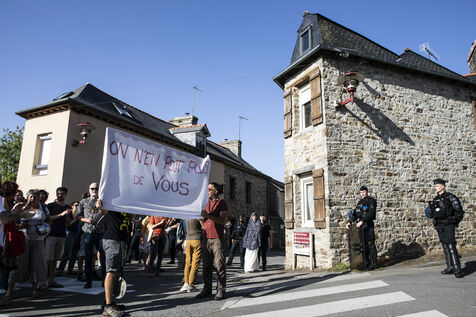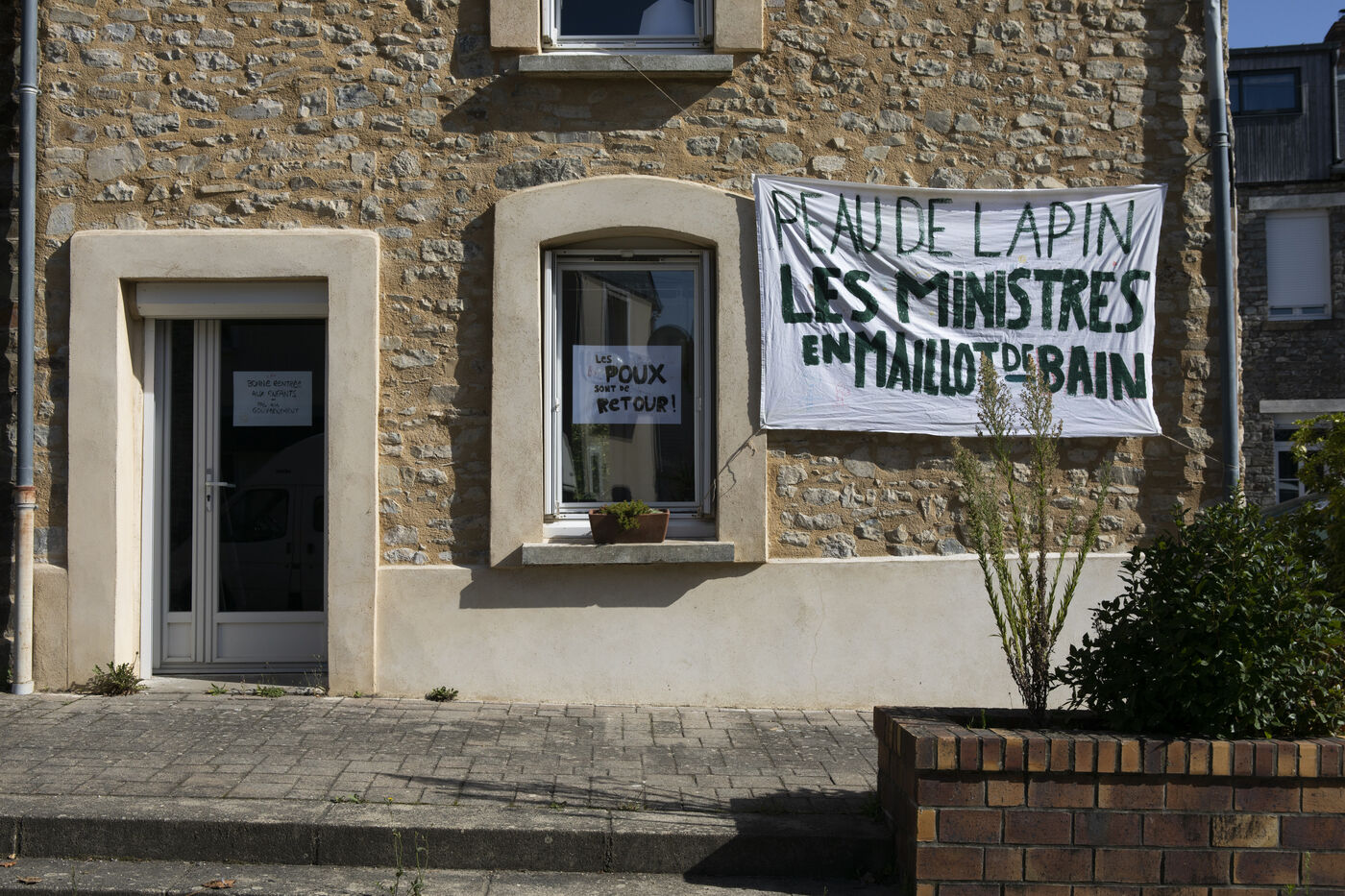 Protest against the visit of Prime Minister at Saint-Germain-Sur-Ille Primary School