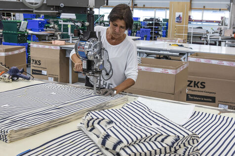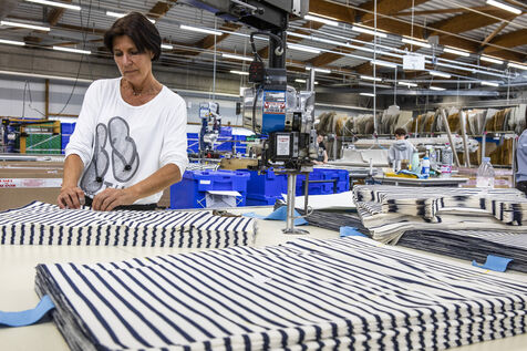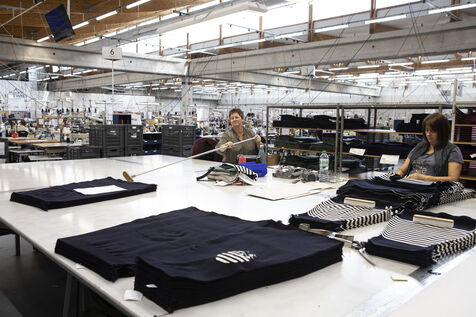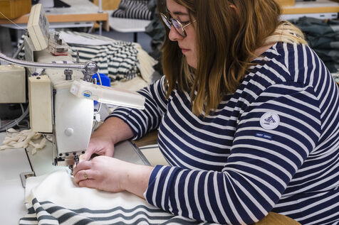 Les ateliers de fabrication des pull-overs et marinières Saint James, dans l'une des usines phares du savoir-faire textile français et du pull marin