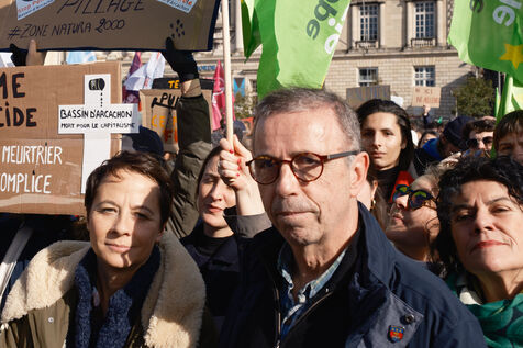 Demonstration against new oil wells in the Arcachon basin. Around 3,000 people came to protest and ask the prefect to ban the creation of 8 new oil wells by the Canadian company Vermilion in the commune of La Teste de Buch, behind the Dune du Pilat.