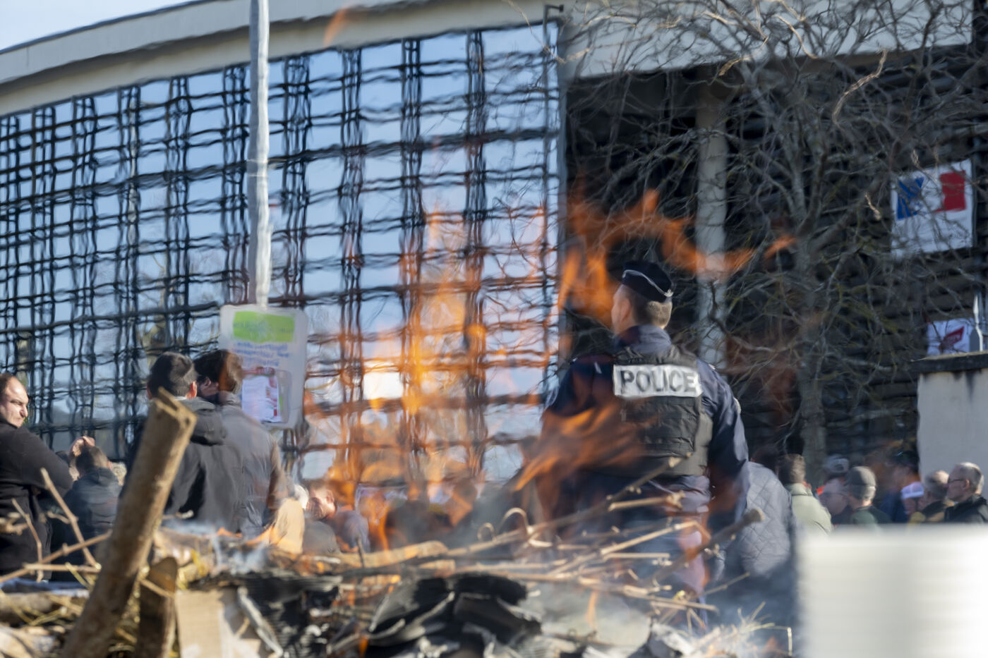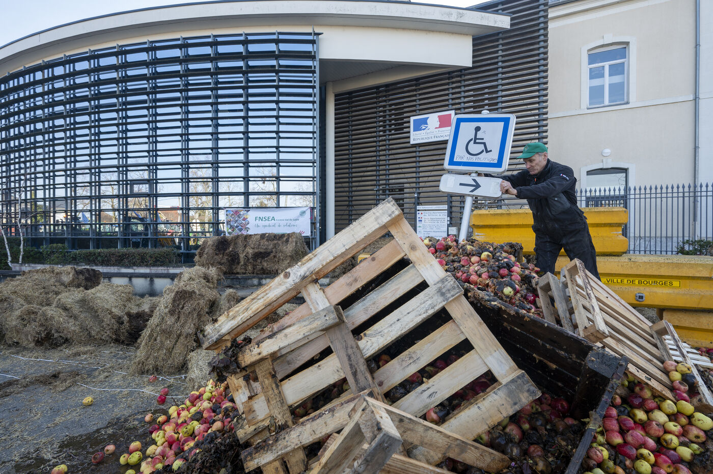Farmers gathered in front of the Direction Départementale des Territoires building, in response to a call from the FNSEA and the young farmers of Cher.
