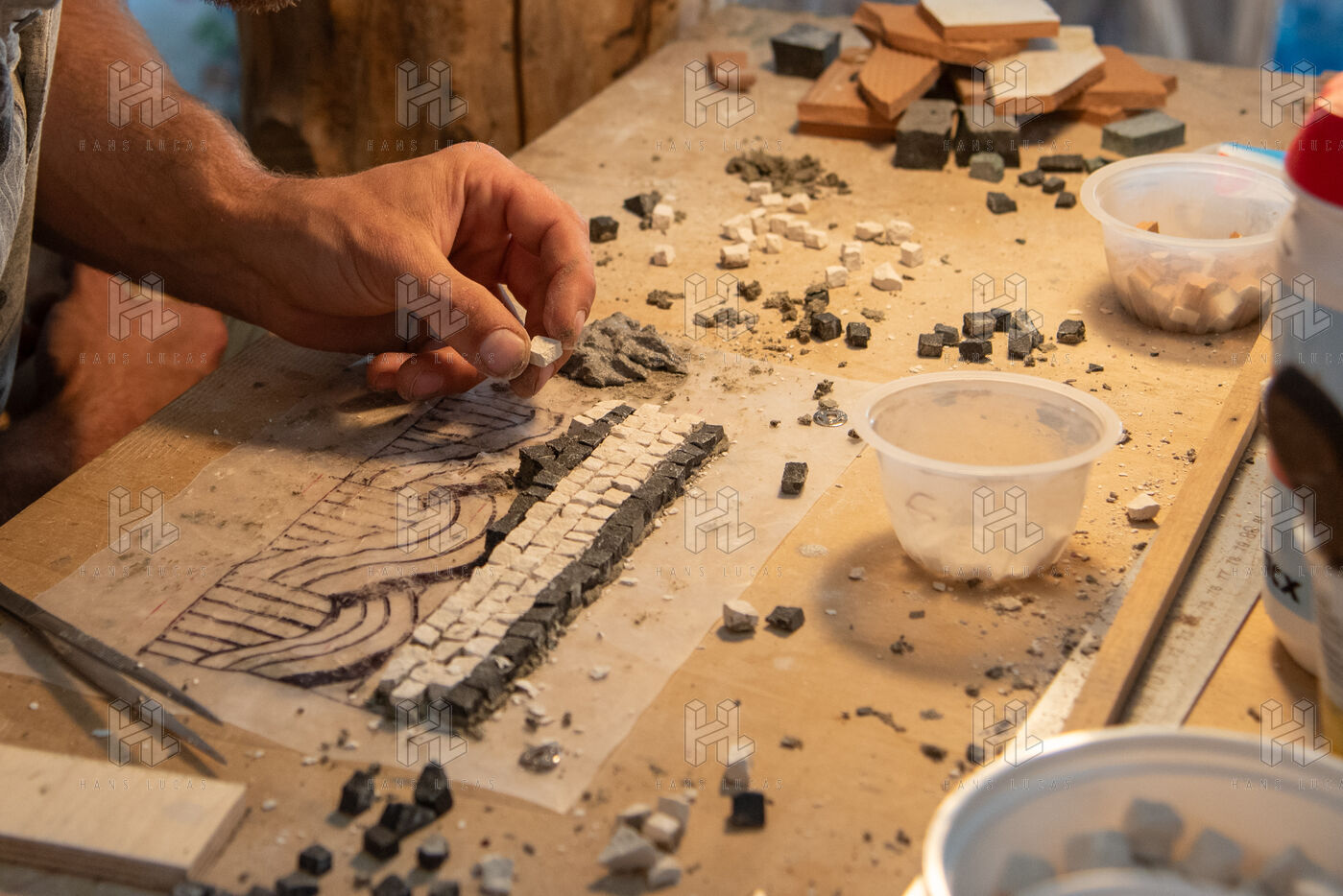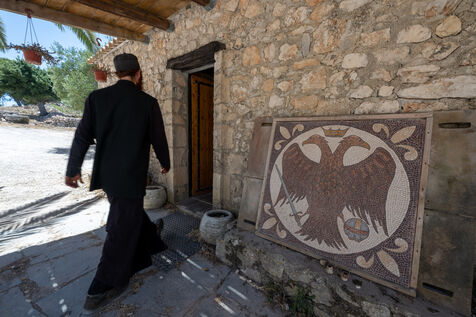 The Agios Georgios Krimmon Monastery on the island of Zakinthos in Greece is home to a mosaic workshop that welcomes monks from all over the world, as well as trainees who come to learn the art of mosaics.