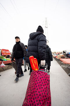 Les marchés publics pendant le Nouvel An chinois sont animés d'activité alors que les acheteurs s'emparent avec enthousiasme de décorations vibrantes symbolisant la bonne fortune. Au milieu des interactions animées entre vendeurs, l'atmosphère est imprégnée de l'énergie festive de la chasse aux bonnes affaires, transformant le marché en un centre animé de célébration.