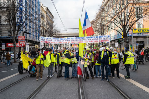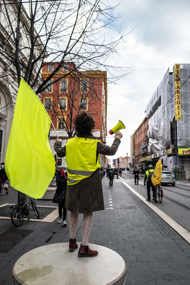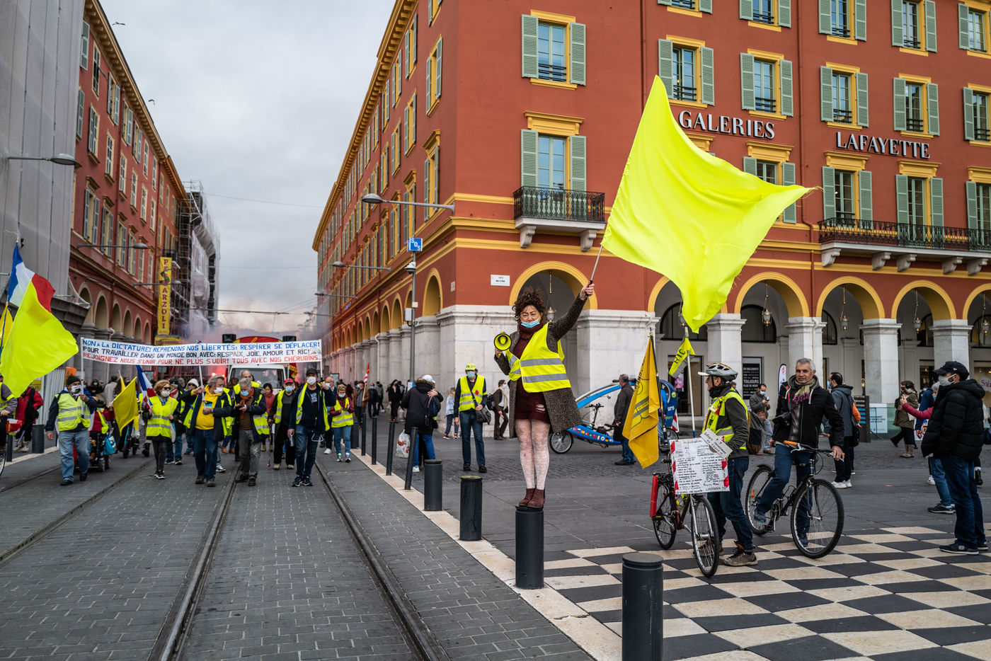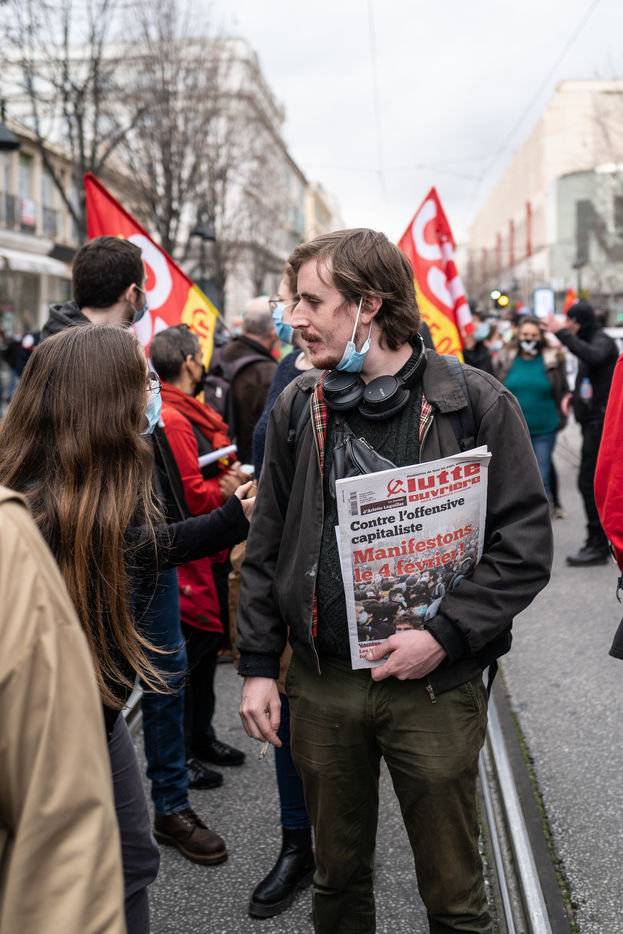 En France, a Nice, au depart de la gare SNCF jusqu?a la place Garibaldi, plus de 1500 personnes ont manifeste pour la defence de la culture, du systeme de sante, Nice le 4 fevrier 2021.