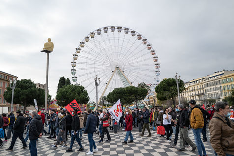 In France, in Nice, from the SNCF railway station to the Garibaldi square, more than 1500 people demonstrated for the defense of culture, health system, Nice on February 4, 2021.