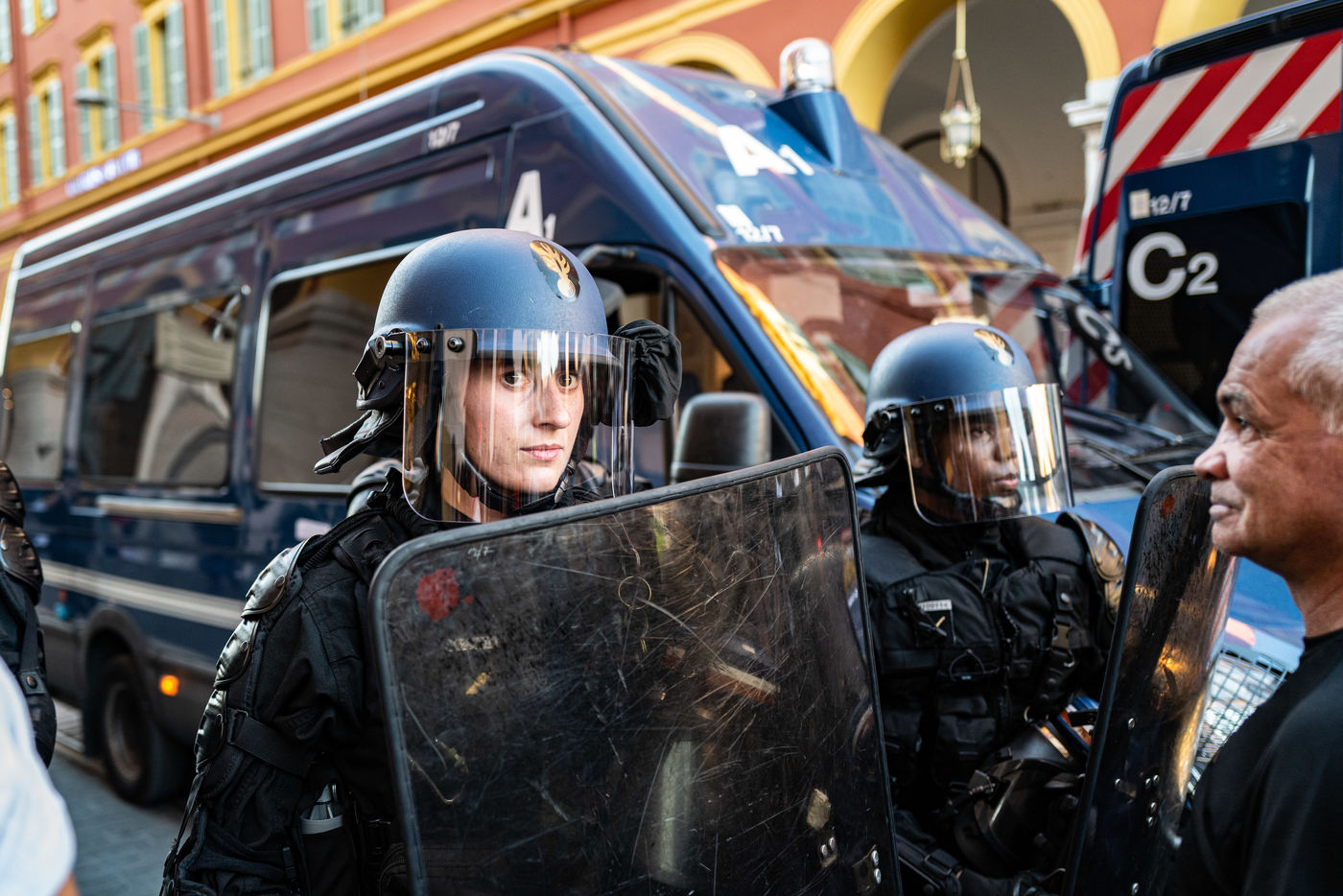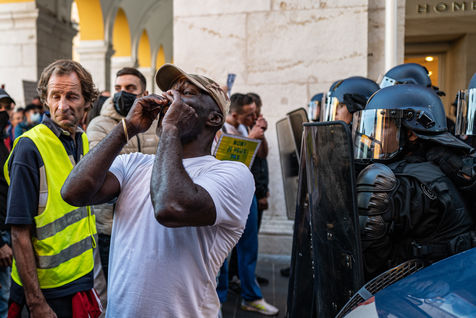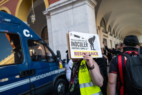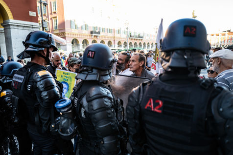 In Nice, a very large police force for the anti-vaccines!