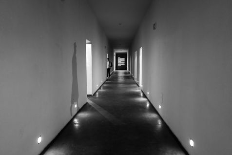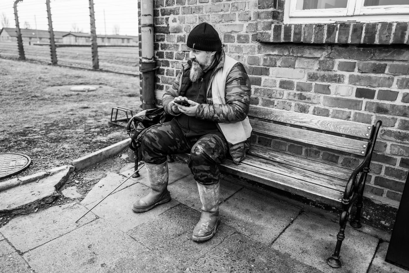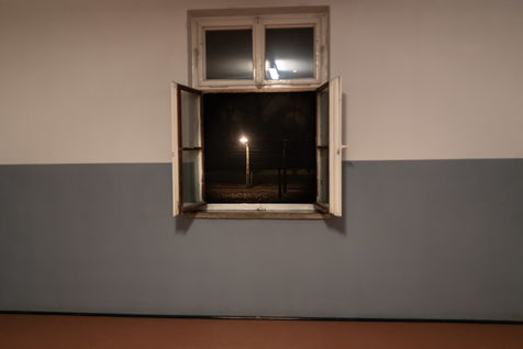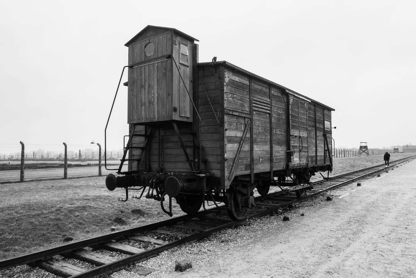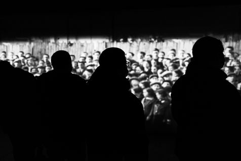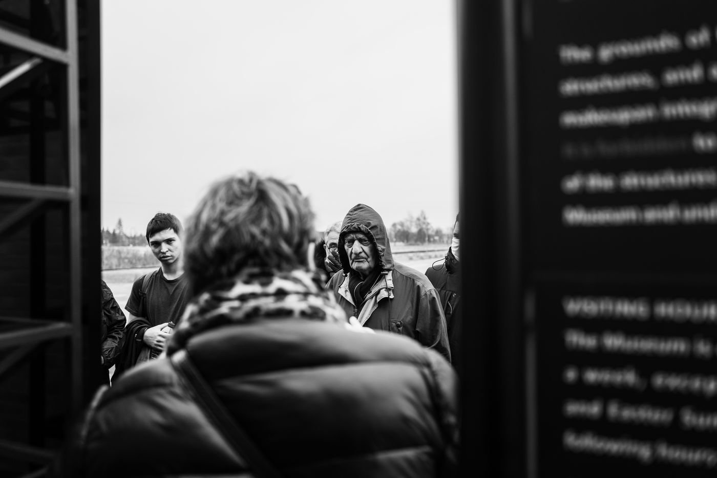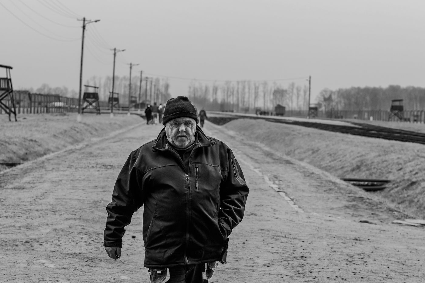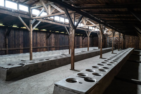 Le camp d'Auschwitz entre ombre et brouillard