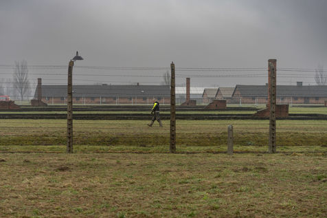 The Auschwitz camp between shadow and fog