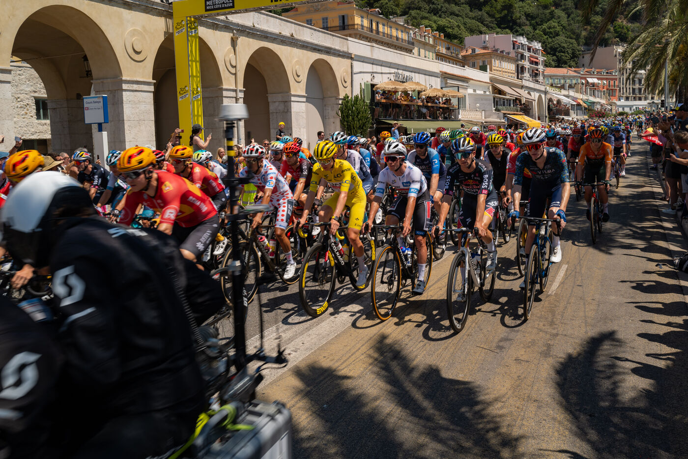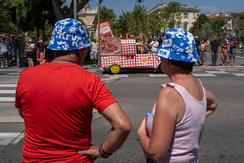 The Tour de France cycling caravan arrives in Nice for the last two stages. The whole city is abuzz with excitement as tens of thousands of participants wait for the riders to pass along the Promenade des Anglais.