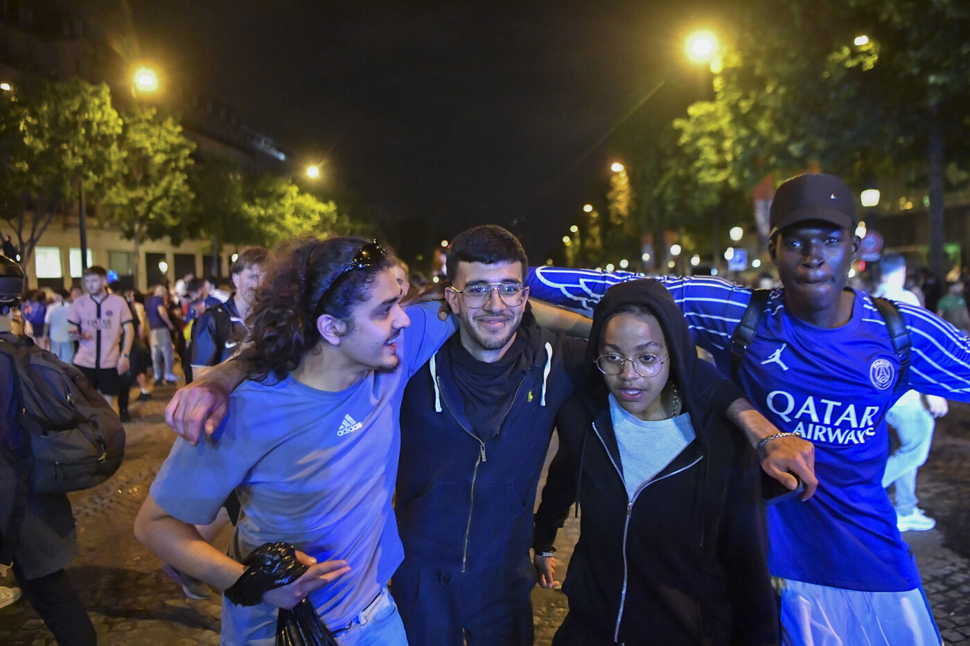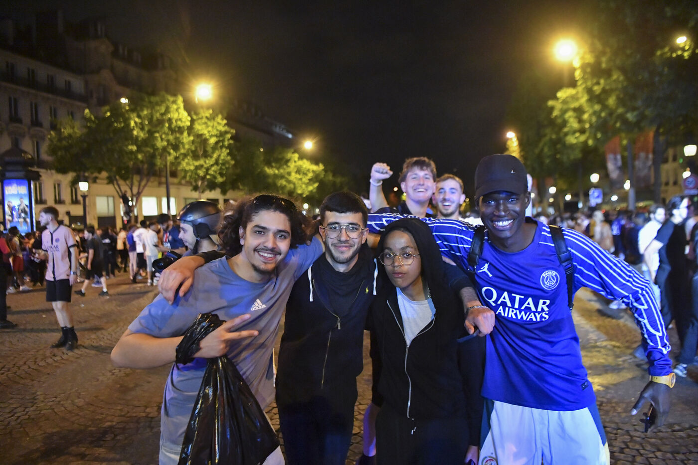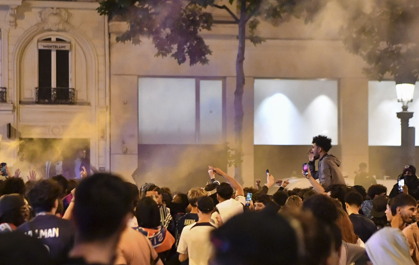 A scene of joy in Paris after PSG's victory in the Champions League final.