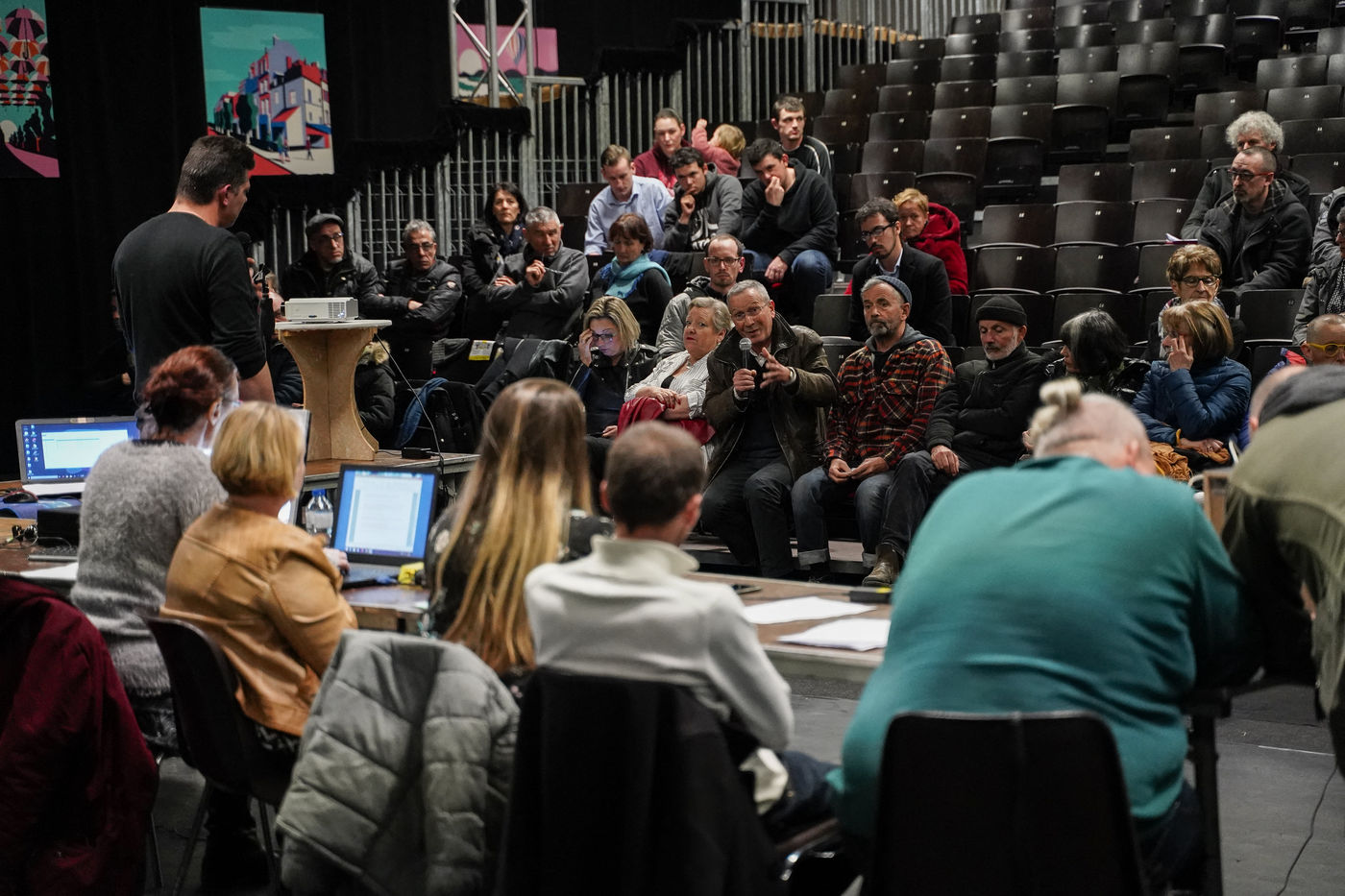 Les gilets jaunes du saumurois organisent et animent un grand débat dans la salle Beaurepaire de Saumur. Une centaine de personnes sont venus débattre.