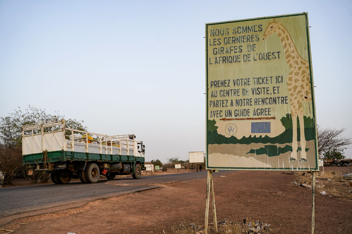 The species is the Niger giraffes and more particularly the subspecies peralta. Once widespread by the thousands from Niger to Senegal, they have been decimated by the expansion of cultivated areas, hunting, poaching and the spread of desertification.