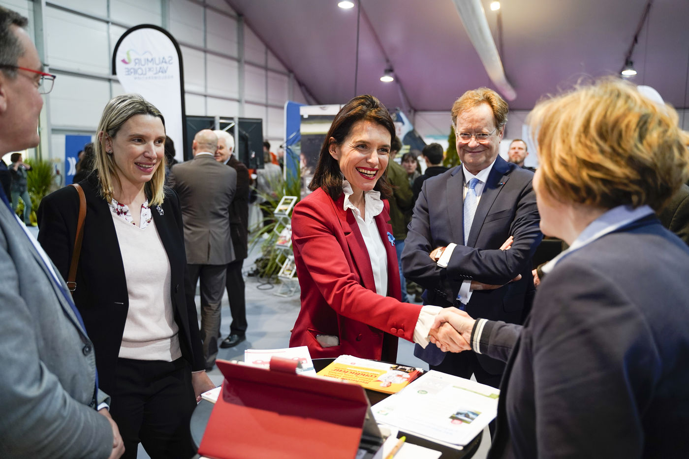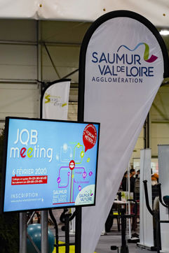 Signature of the "Territory of Industry" Memorandum of Understanding. This was signed between the Saumur Val de Loire conurbation, the State, the Region and the Chamber of Commerce and Industry (CCI) in the presence of Laetitia Saint-Paul, Vice-President of the National Assembly and Deputy for Maine-et-Loire and Christelle Morançais, President of the Pays de la Loire region. This signature took place during the "job meeting" among companies, organisations and training establishments and surrounded by Saumur residents looking for work or vocational training.